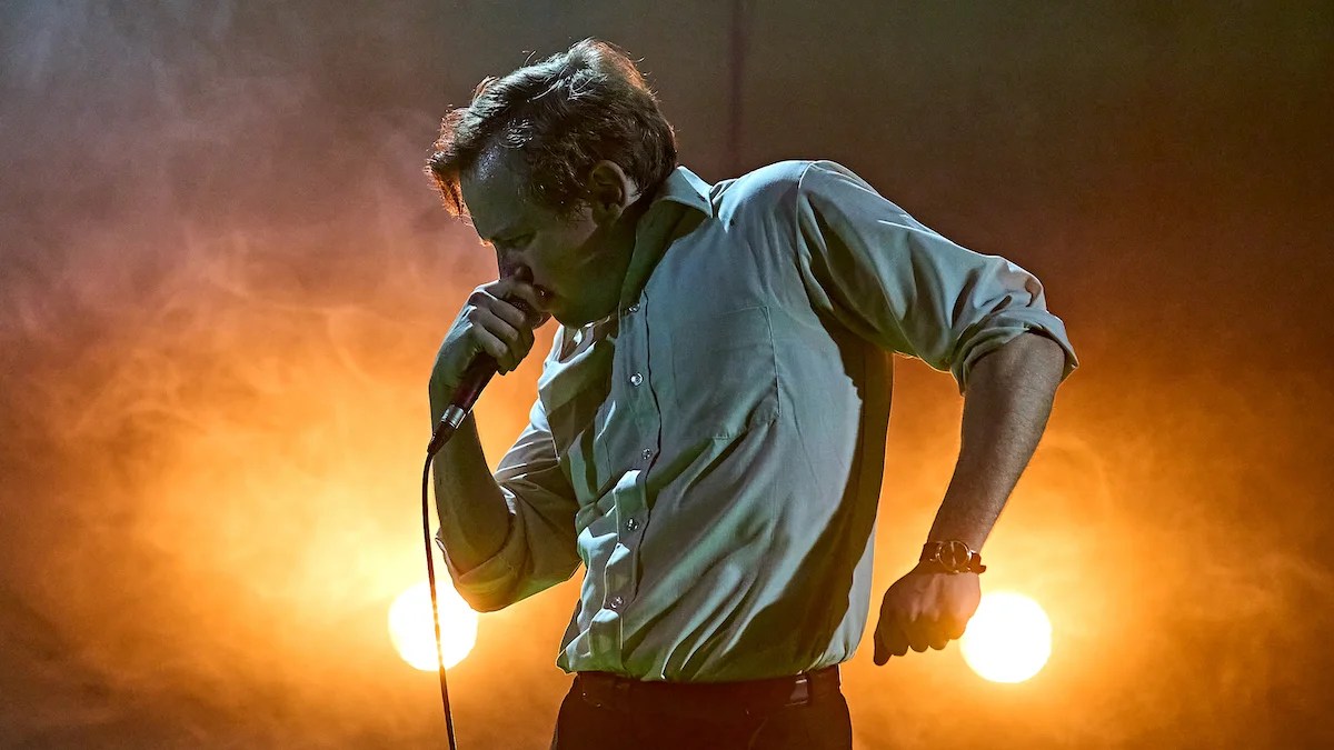 Back in the civilized world of New York City, “Kenrex” appears to be a throwback to “The Belle of Amherst” with Julie Harris and “Tru” with Robert Morse; that’s when one-person plays ran over two hours with an intermission. Nowadays, it’s 90 minutes and you’re out of the theater. Harris and Morse, of course, only played one character each, and they weren’t asked to move around the scenery. In addition to playing all those Skidmore citizens, Holden must move a doorway that changes colors, a stairway on wheels and a bunch of standing microphones (scenic design by Anisha Fields). It’s quite a show under Stambollouian’s flashy direction. Especially creepy are those truck headlines (lighting by Joshua Pharo) that illuminate a few scenes of violence through clouds of dry ice.